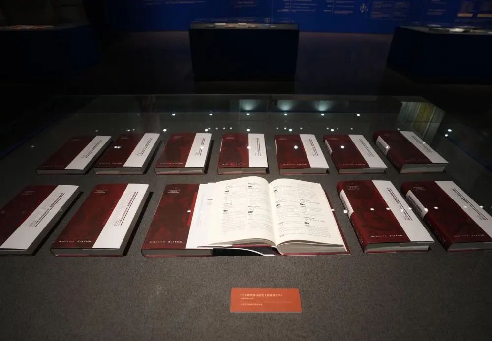 ▲展览上展示的“中华创世神话研究工程系列丛书”