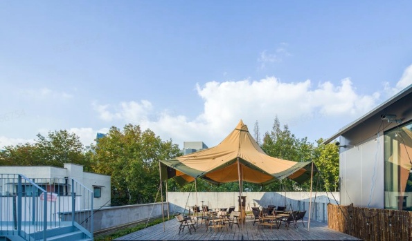 在长宁区百年老马路武夷路上,有着一个处体现融合概念的“魔都跨界潮流圣地”——武夷|MIX320。最近,这里的一家餐厅——Morning LAB 早安舞帐六釜露营餐厅试营业,致力打造沉浸式露营空间。潮人们,快去打卡吧!