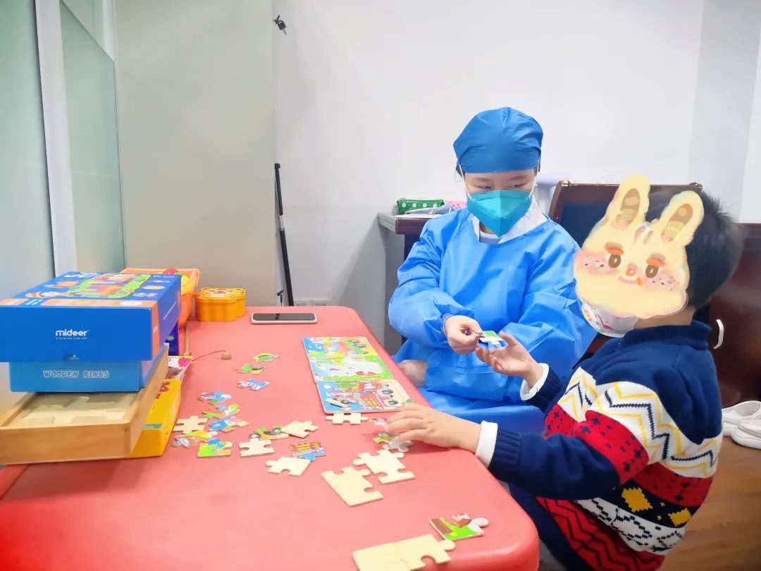 除了专业的康复设施及康复技术外,虹桥社区卫生服务中心还组建了一支有温度的康复团队,由儿童康复医师、康复治疗师组成。康复团队结合家庭及患儿的各方面需求,为每一个特殊家庭提供最适宜的康复方案及治疗安排。随着患儿的逐渐增加,康复师们常常利用中午休息时间和下班时间为患儿做各类康复治疗。