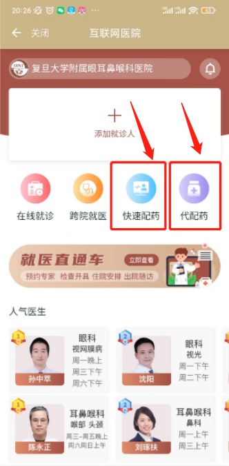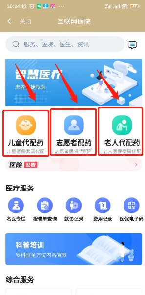 按照医院流程,患者在线选择“配药”功能,在线缴费后可选择配送到家服务。