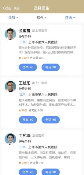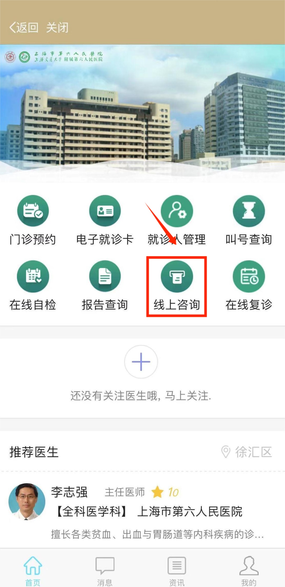 点击“互联网医院”首页上的线上咨询服务,选择需要咨询的医疗科室、医生即可线上图文/电话咨询。