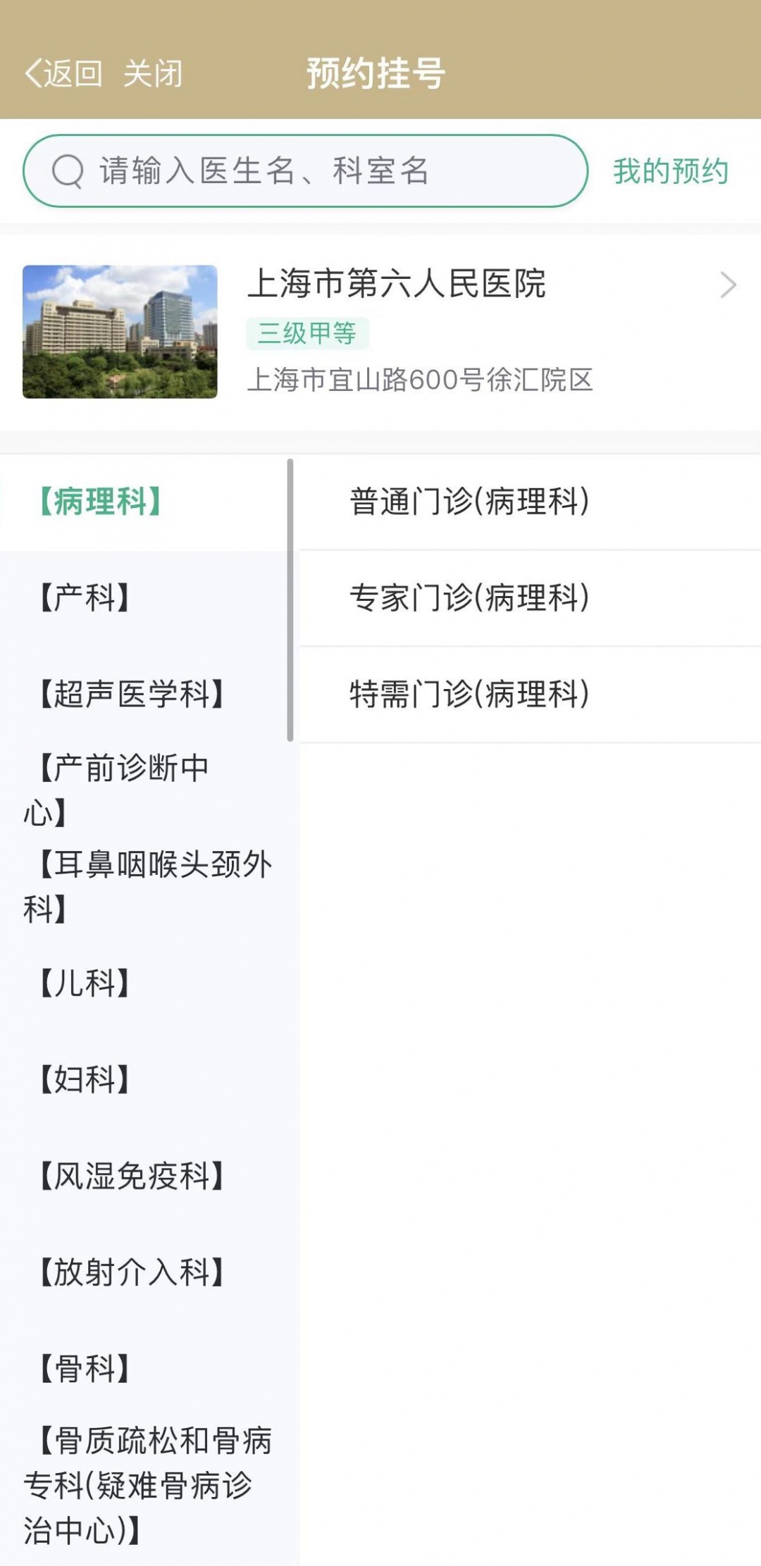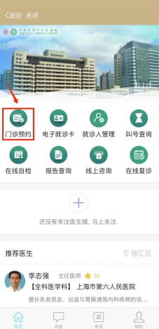 点击“互联网医院”首页上的门诊预约服务,选择所需要预约的科室即可完成线上预约。