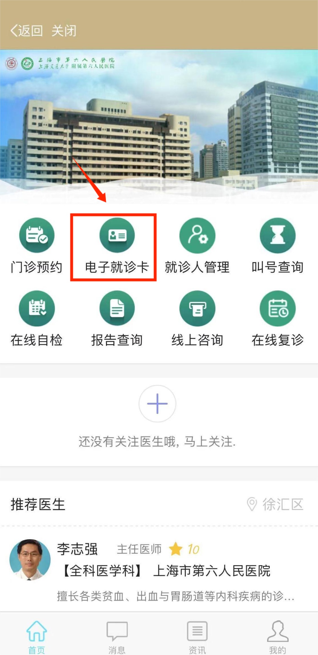 点击“互联网医院”首页上的电子就诊卡服务,即可添加/删除电子就诊卡。
