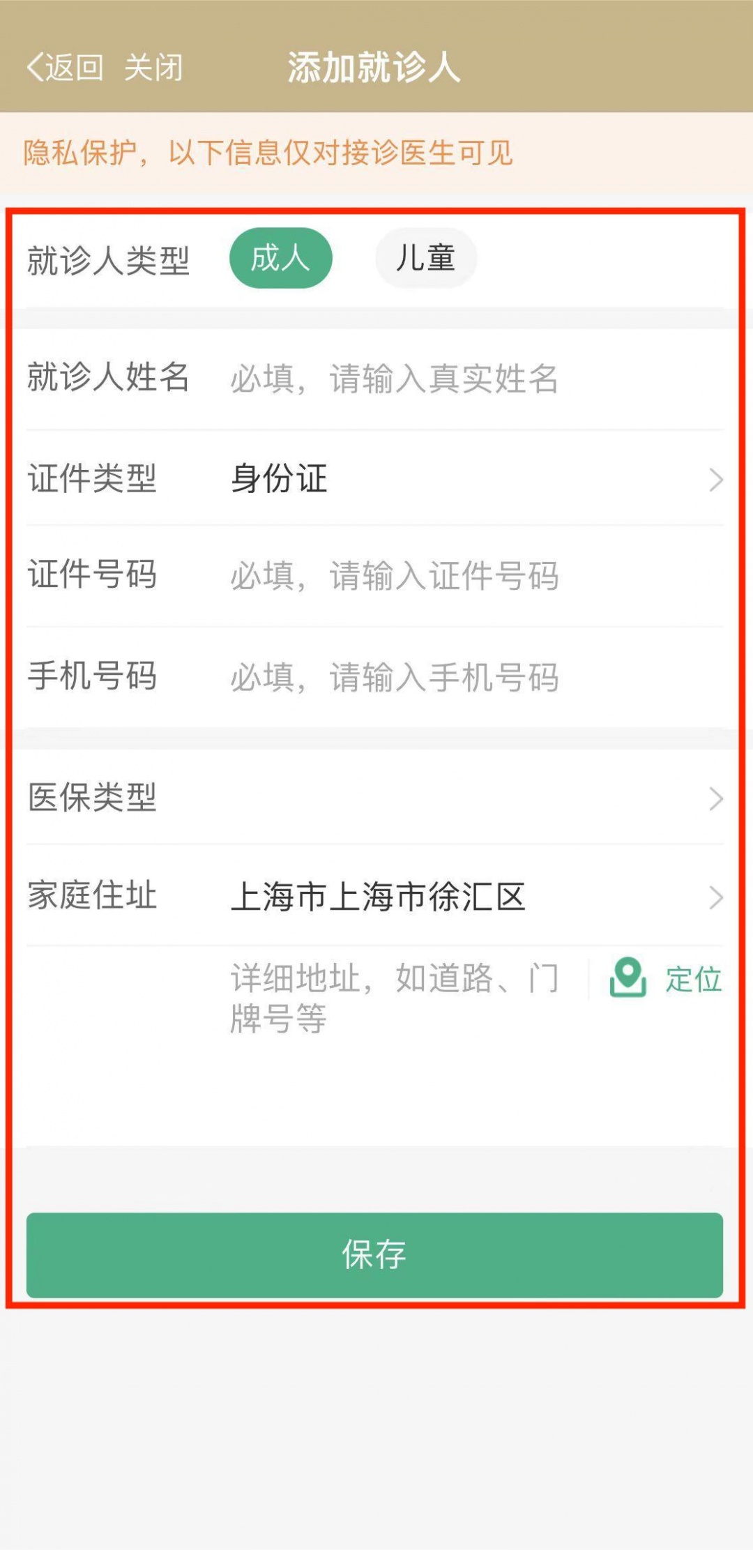 点击“互联网医院”首页上的就诊人管理服务,即可添加/删除就诊人员。
