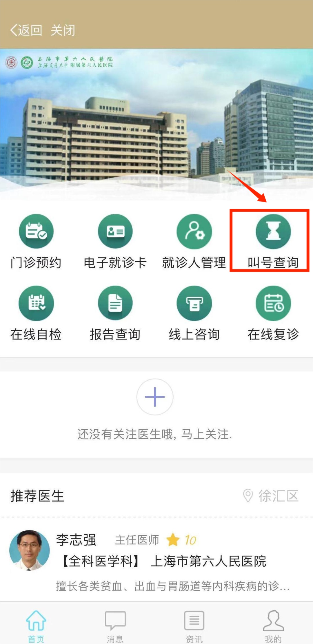 点击“互联网医院”首页上的叫号查询服务,即可在移动端线上查看排队名次。