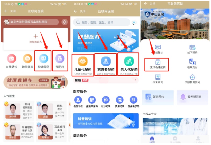 按照医院流程,患者在线选择“配药”功能,在线缴费后可选择配送到家服务。