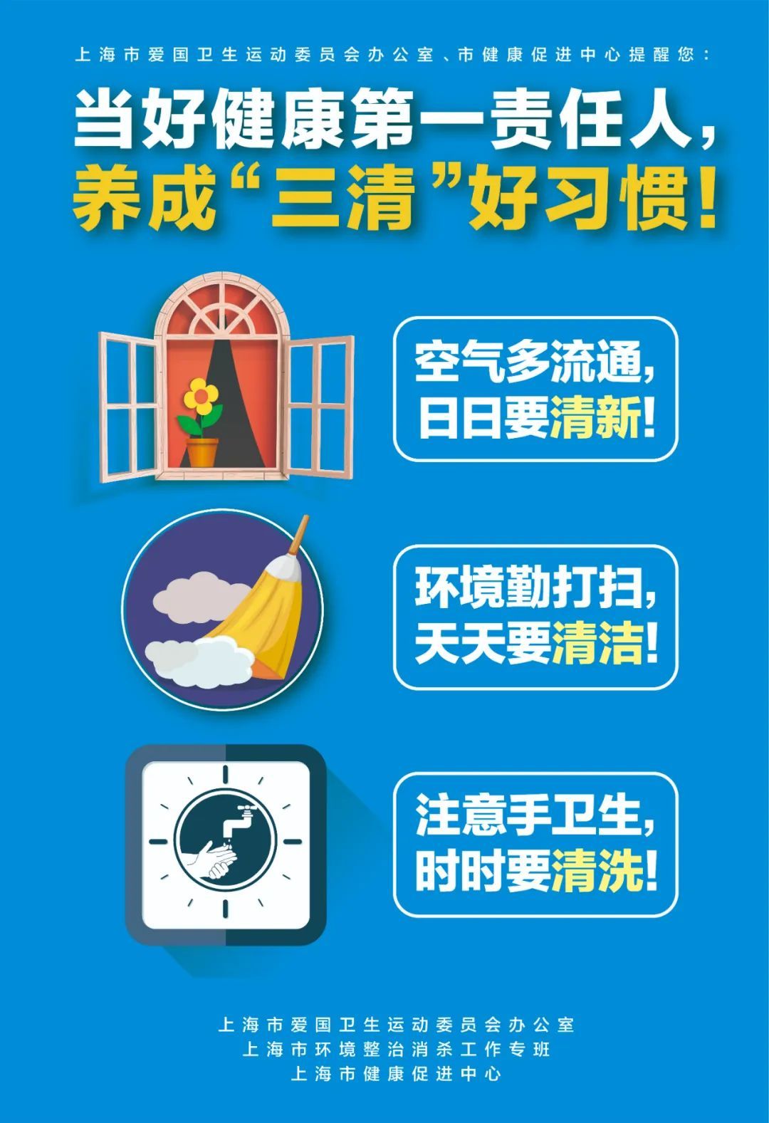 上海市爱国卫生运动委员会办公室、上海市环境整治消杀工作专班、上海市健康促进中心提醒您:当好健康第一责任人,养成“三清”好习惯!