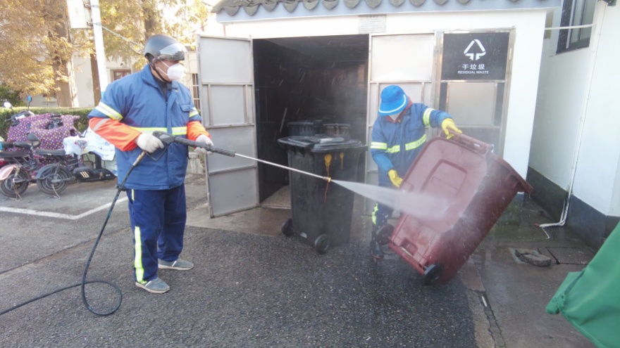 上海朱家角清运保洁有限公司朱家角清运科主管朱胜峰告诉记者,公司每天都会安排定人、定时、定点对古镇区域的公厕、垃圾箱房、果壳箱和道路严要求、严标准消杀。目前公厕保洁消杀每天出动79人,垃圾箱房和果壳箱保洁消杀每天出动14人,镇区主干道路和古镇老街每天消杀出动1辆8吨洒水车,1辆道路养护车和2辆三轮电瓶冲洗车,为朱家角环境卫生质量筑牢安全防线。