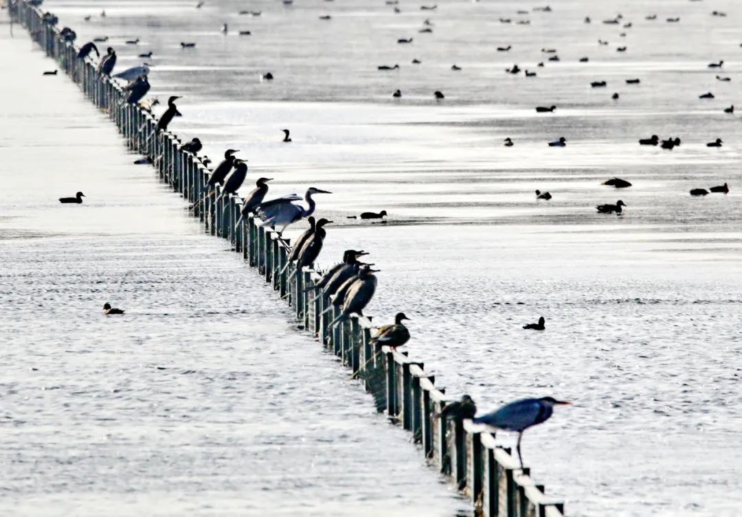 我们在整个湿地范围内做了很多生物保育网和生态浮岛,目的就是让一些候鸟在中途中转的时候能休息好,现在已经有非常多的鸟类选择在这儿栖息。