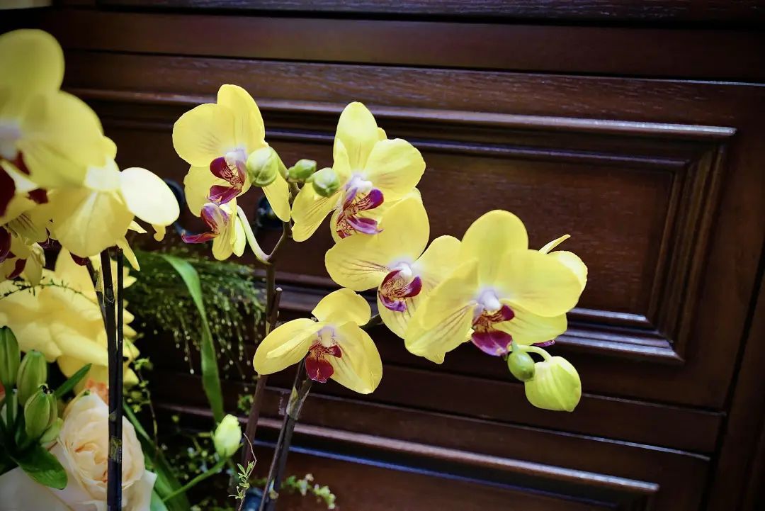 插花艺术作品中,蝴蝶兰显得高级感满满。