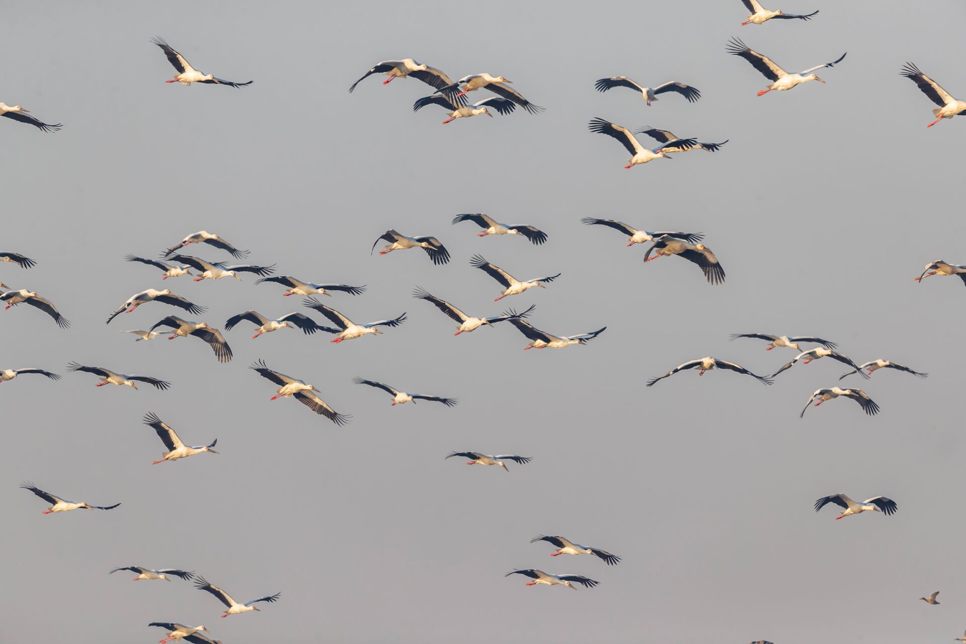 12月19日,临沂市郯城县马头镇,一群东方白鹳在沂河岸畔飞舞嬉戏。(大众日报客户端记者 卢鹏 通讯员 房德华 刘宗武 报道)