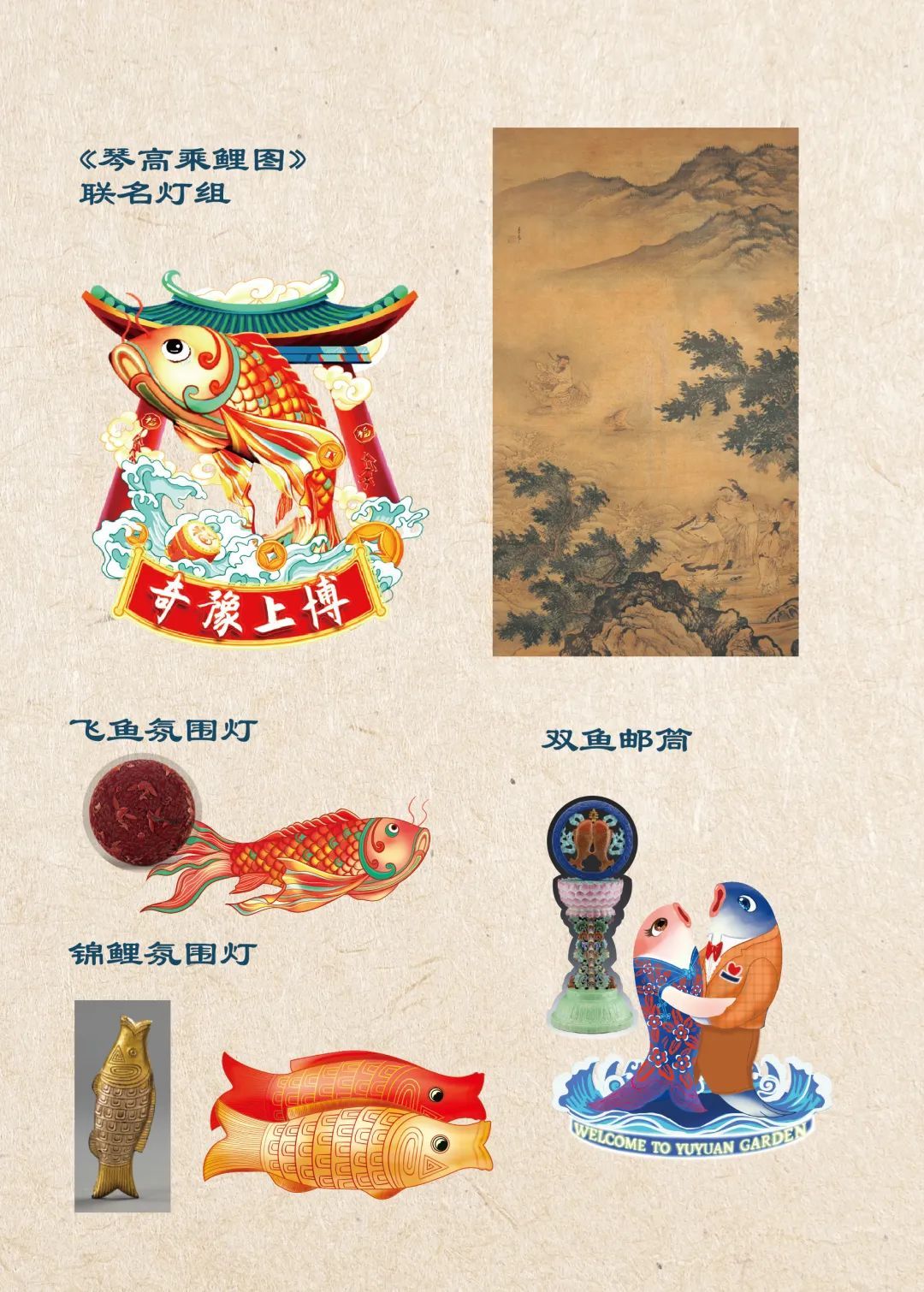 豫园老街“奇豫上博”文化特色街区的打造,源自对《山海经》中文瑶鱼化身而来锦鲤的深度思考。上博馆藏琴高乘鲤图轴、彩佛供双鱼摆件等蕴含锦鲤元素的文物,摇身一变,成为充满趣味性的灯组和极具网红潜质的邮筒,使得文物以全新的形式“复活”,穿越时空,再次触达今人的心灵,传递出中国精神与东方美学。