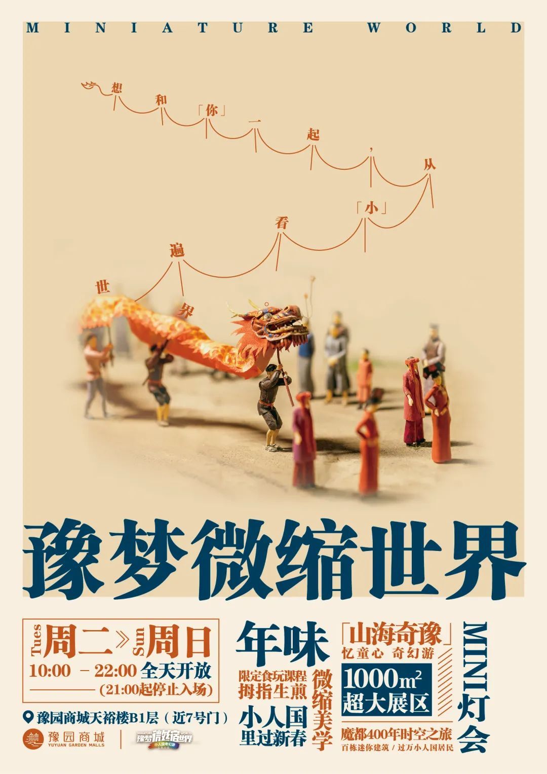 在天裕楼豫梦微缩世界中以MINI灯会的形式再次呈现。海上遇园展区还原了豫园及城隍庙庙市全景,九曲桥、湖心亭增添新展品,复刻山海奇豫记的一片灯火;江海之汇的镜中世界铺满各式灯笼,加上船只模型,是拍照打卡的胜地。赏玩同时,豫梦还推出了微缩食玩课。