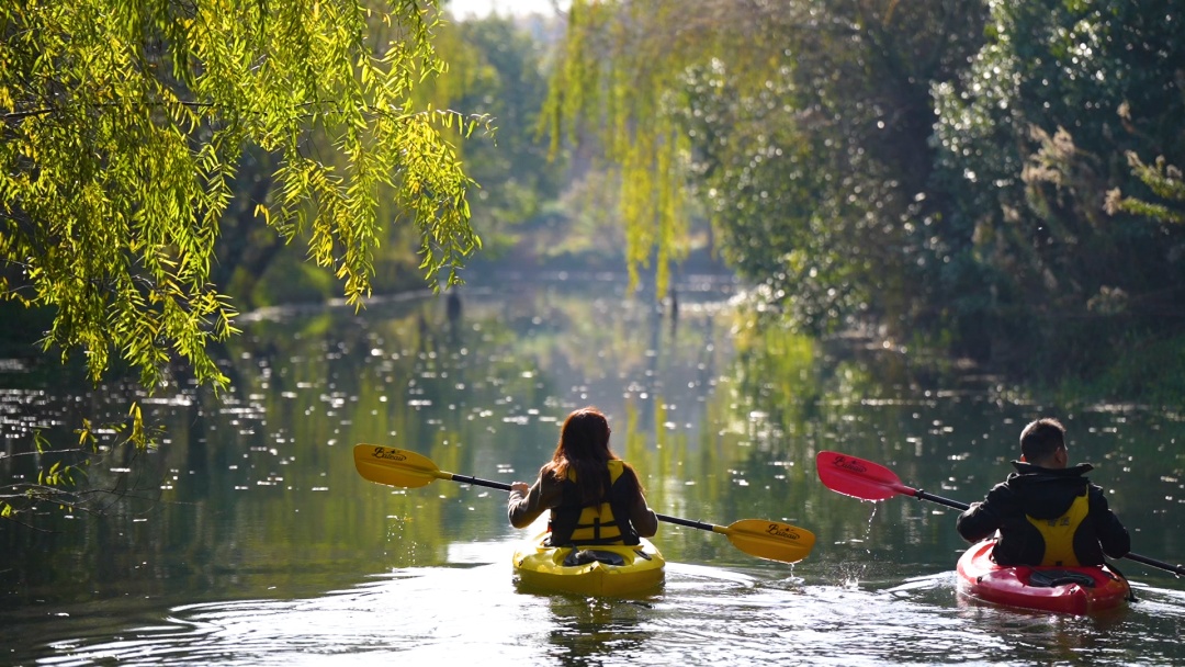阳光、微风、河流,市郊乡野,避世远遁的游人,划着轻盈灵动的小舟,在绝美秘境中穿行向前。