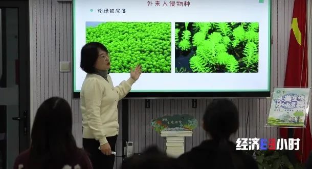 上海市农业科学院高级农艺师马坤会指导社区的志愿者,如何辨别本土植物和外来入侵植物,并教他们如何定期巡查和维护。