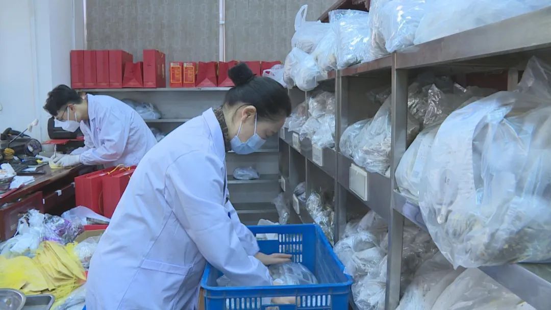 一大早,中医医院的中药房忙碌照常,每天,这里要售出500多人次的中药拟定方。负责人杨琳正在清点三款中医协定方,一会儿,她就要将两款专门针对发热门诊的治疗方送至发热门诊仓库备货。