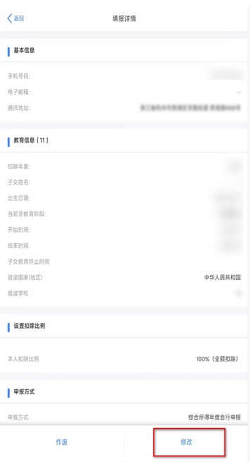 修改时请注意子女受教育阶段是否发生变化。