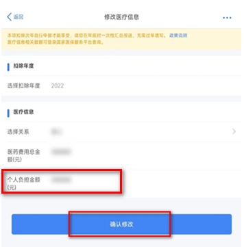 修改时请注意个人负担金额的填写。