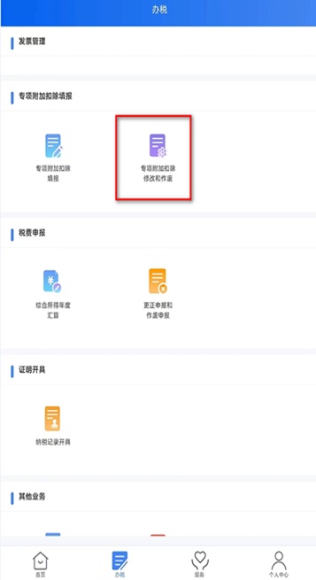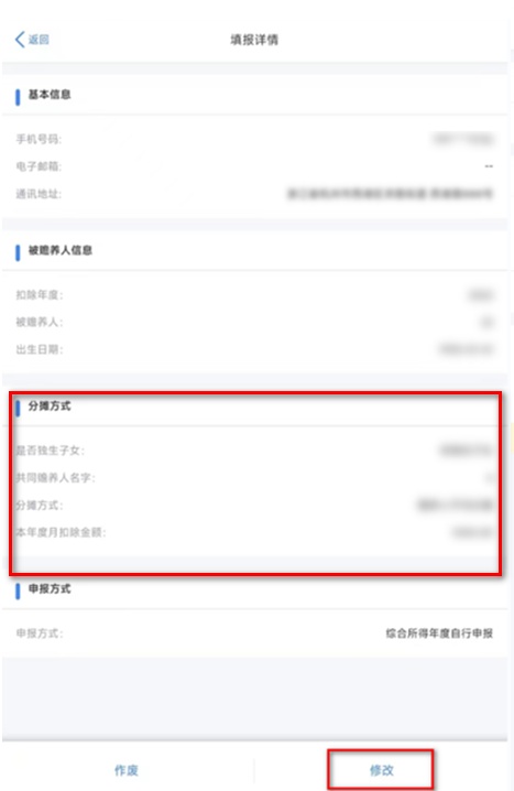 个人所得税APP——办税——专项附加扣除修改和作废。找到需修改的填报记录,点击查看并修改。