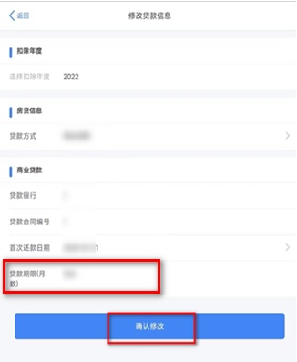 修改时请注意贷款期限(月份)的填写。