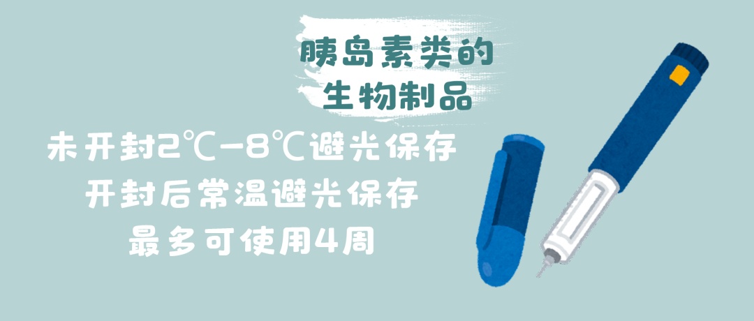 5.诸如胰岛素类的生物制品,未开封时置于2℃~8℃避光保存,开封后常温避光保存,最多可使用4周。