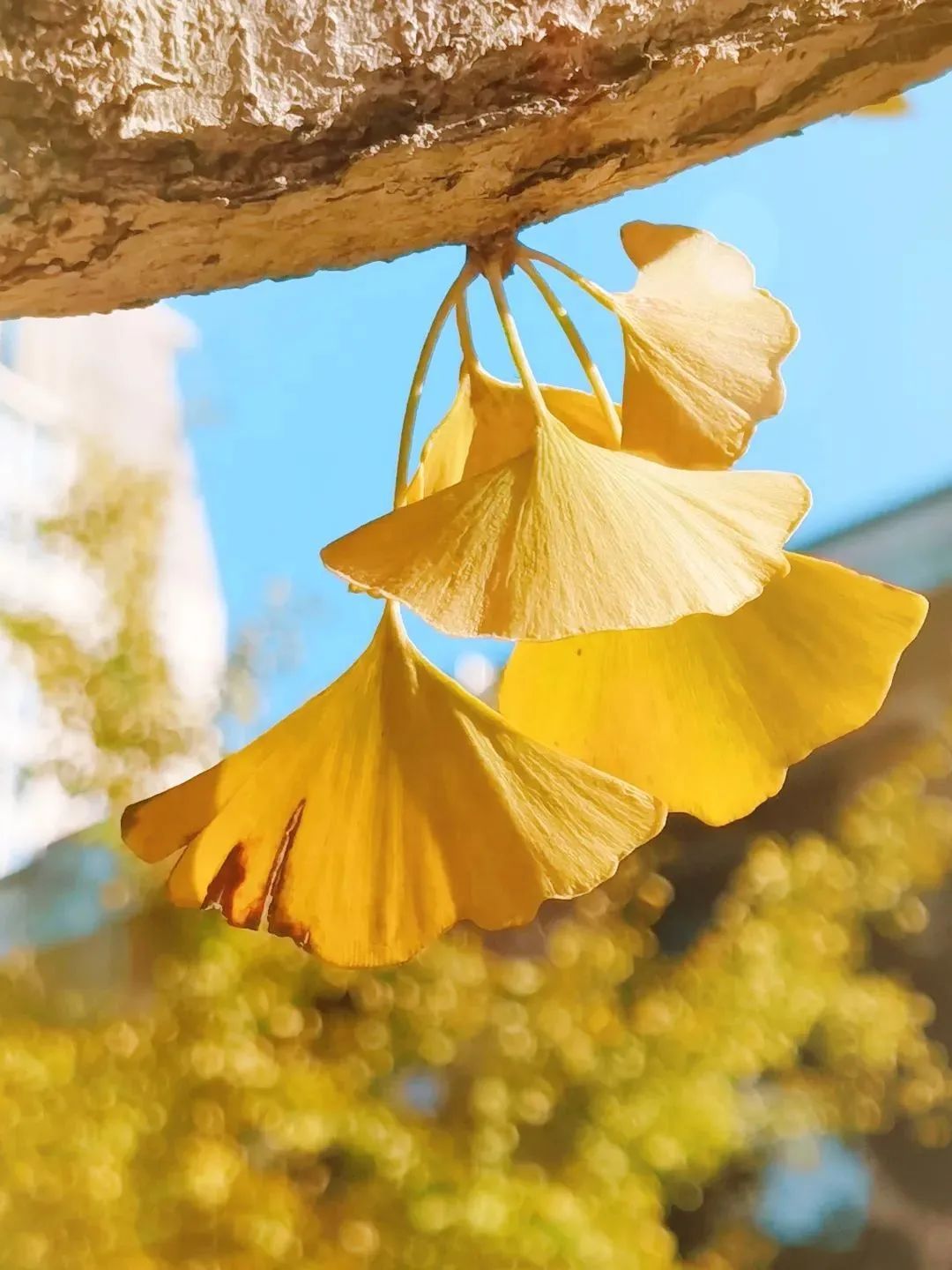 银杏树木高大,春夏换新叶,秋季叶色金黄,呈鸭掌状,故在宋代被称为“鸭脚”,有“凌云枝已密,似蹼叶非疏”(梅尧臣)之美誉。