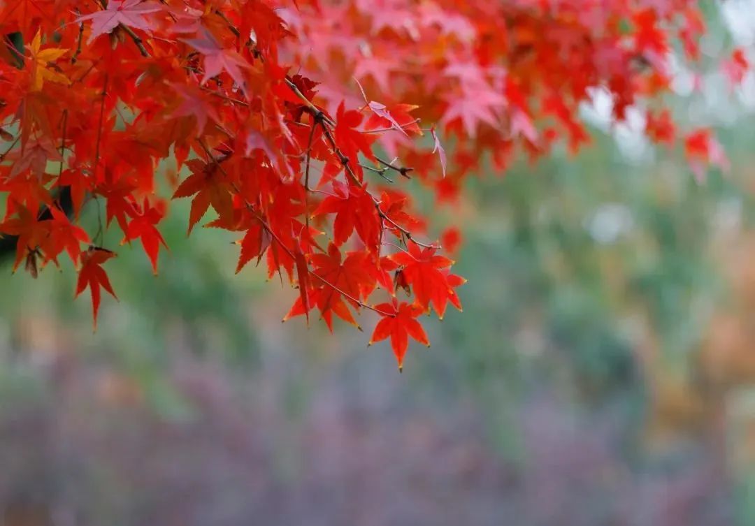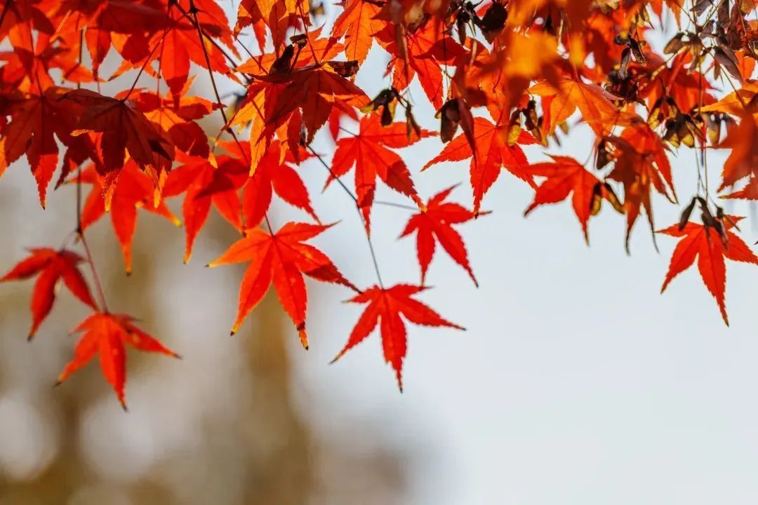 ① 鸡爪槭在春夏时叶片是绿色的,到秋天降温后才变红;而红枫的叶子在春夏秋三季都是红色的,冬季开始落叶。