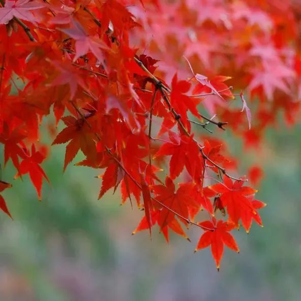 鸡爪槭是落叶小乔木,外形美观,春夏时叶片呈青绿色,入秋后逐渐转为鲜红、深红色。从一叶知秋到层林尽染,鸡爪槭的火红是萧索冬季里一抹难得的炽烈。