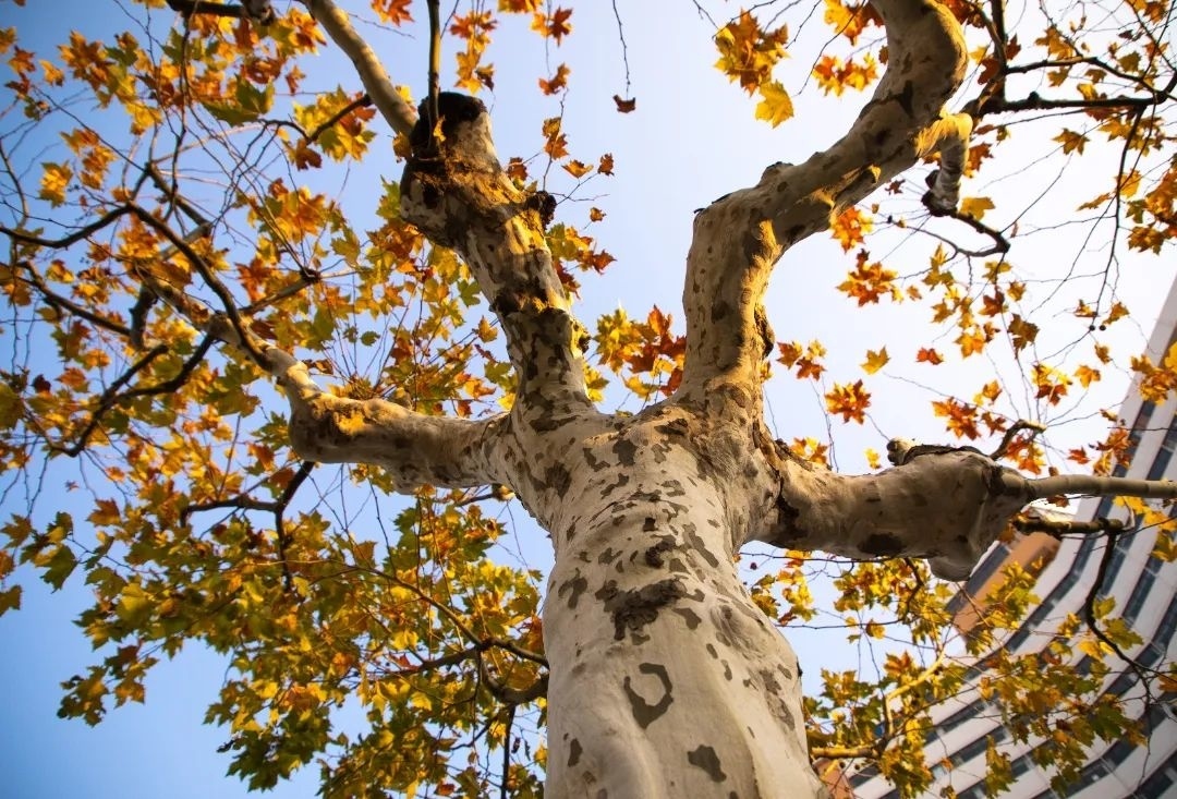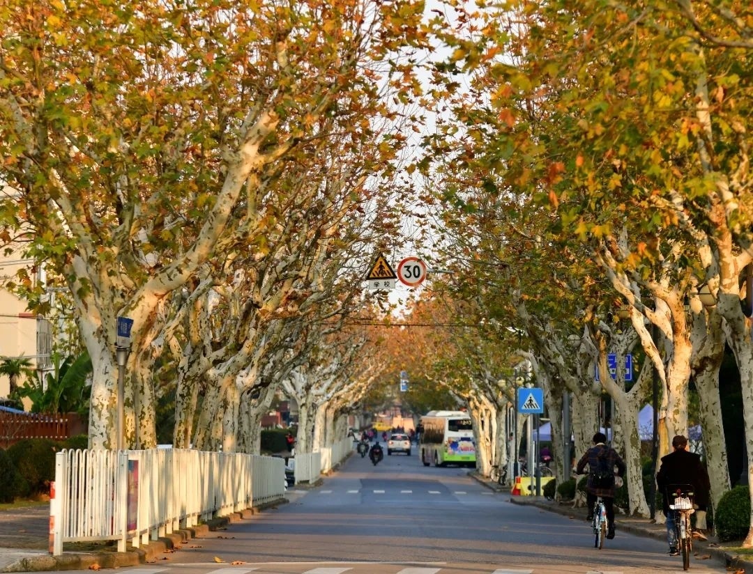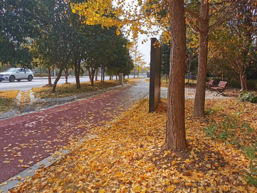 说起金色,第一个想到的树木可能就是银杏了。在龙山路,主要树种银杏成排伫立在人行道上,一叶知岁月,成为时间的见证者。