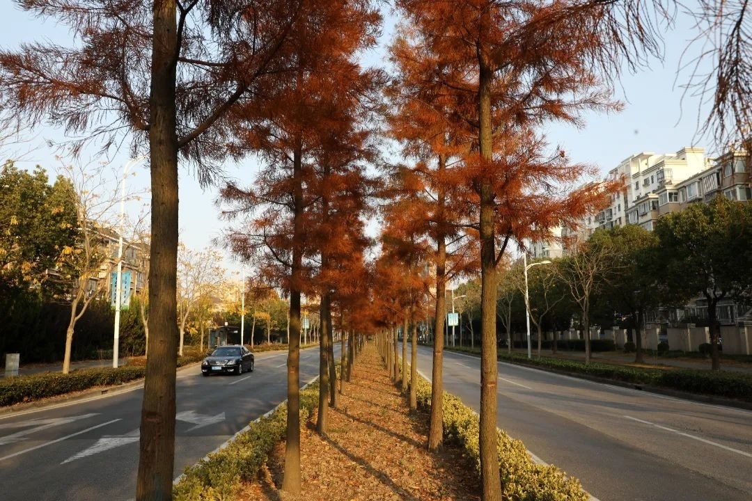 同样以无患子为主要树种的入选道路还有龙轩路,该路段还种有落羽杉,落羽杉最佳的观赏时间在冬季,春天颜色为翠绿色,秋天降温后叶色逐渐变黄,入冬之后会变为艳红色,最后转为红褐色,层林尽染,令人陶醉。
