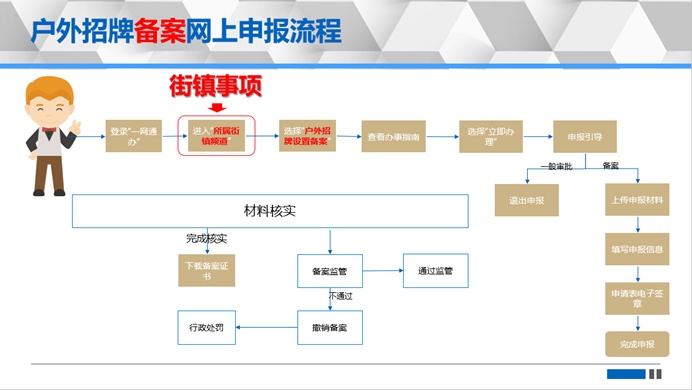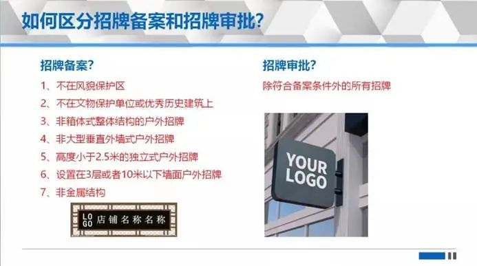 新修订《上海市市容环境卫生管理条例》(以下简称《条例》)已于2022年12月1日正式实施。《条例》中明确,“设置前款(审批类)以外的户外招牌的,设置前应当向街道办事处或者乡镇人民政府办理备案手续”。