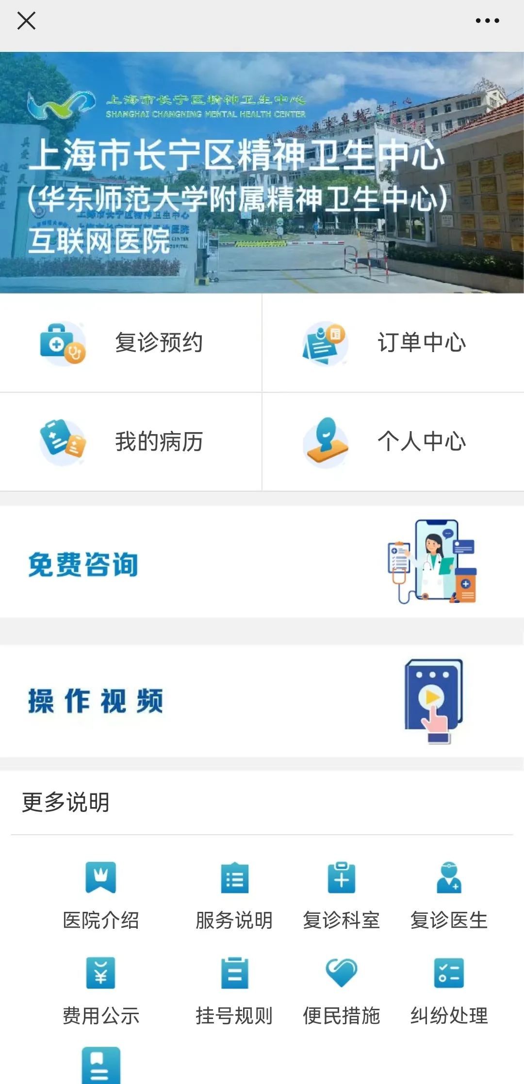 1、扫描下方二维码,关注“长宁区精神卫生中心掌上医院”微信号。