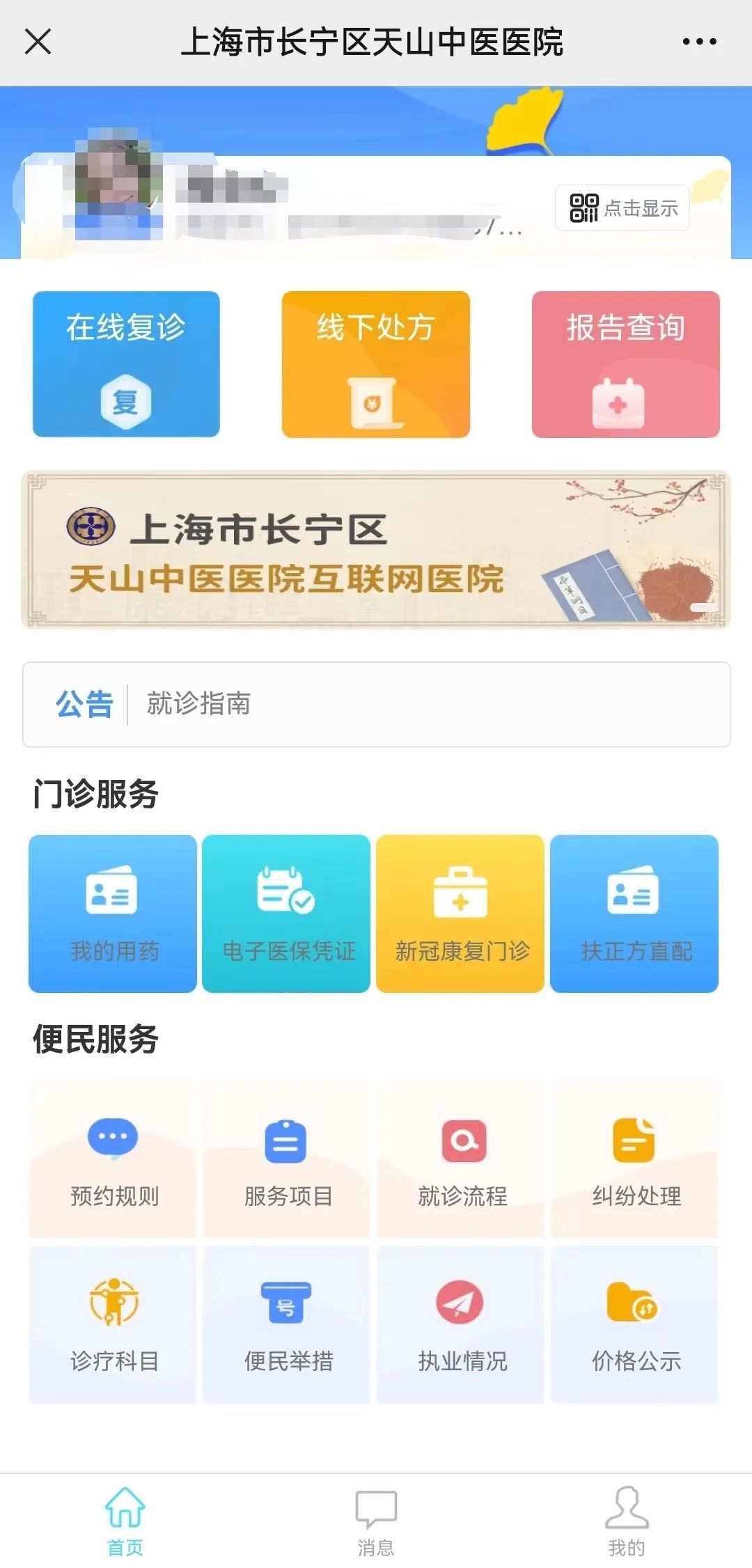 1、扫描下方二维码,关注“上海市长宁区天山中医医院”微信号。
