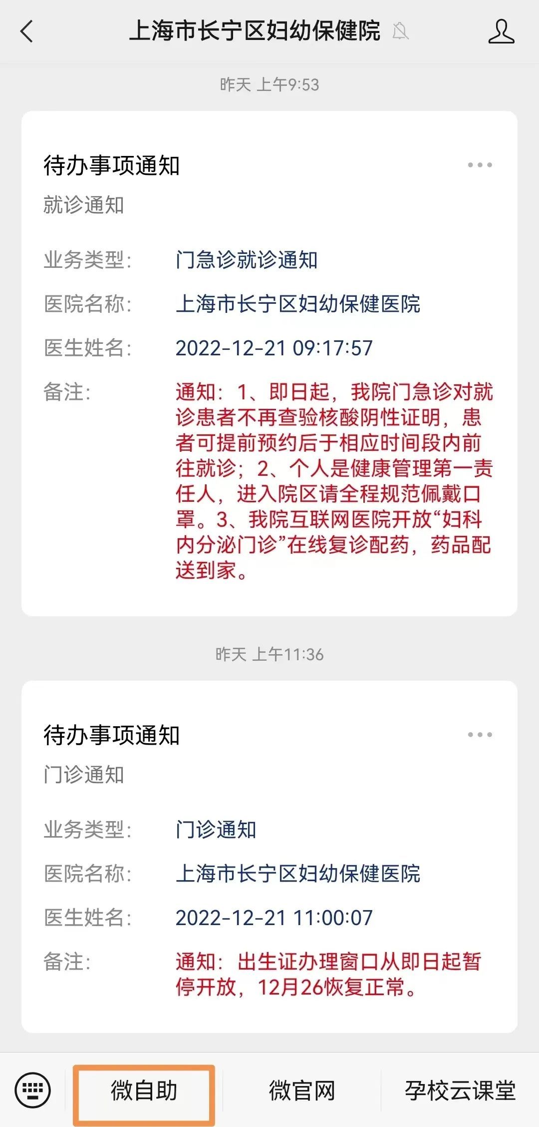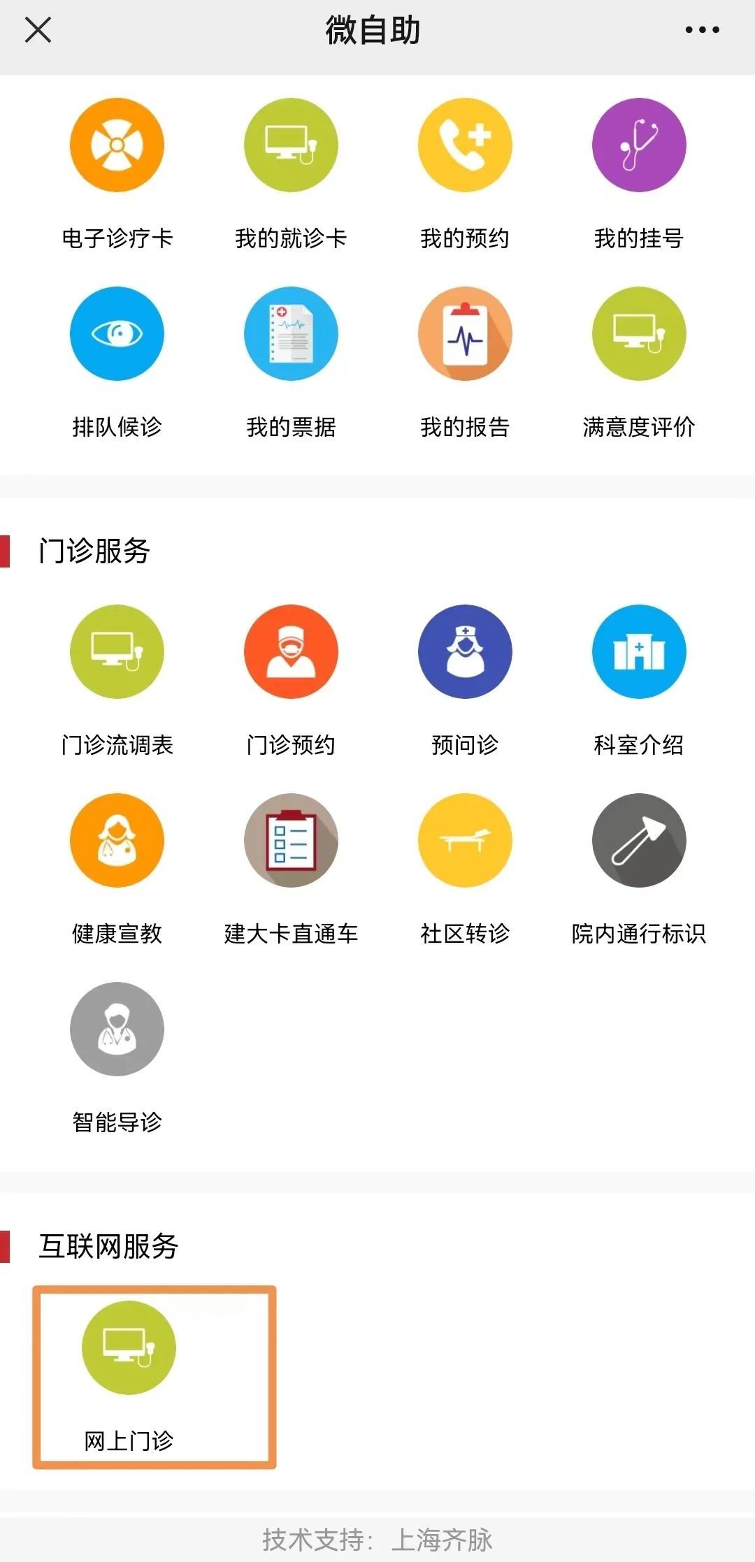 2、点击左下角“微自助”——“网上门诊”后,根据需求选择相应服务。