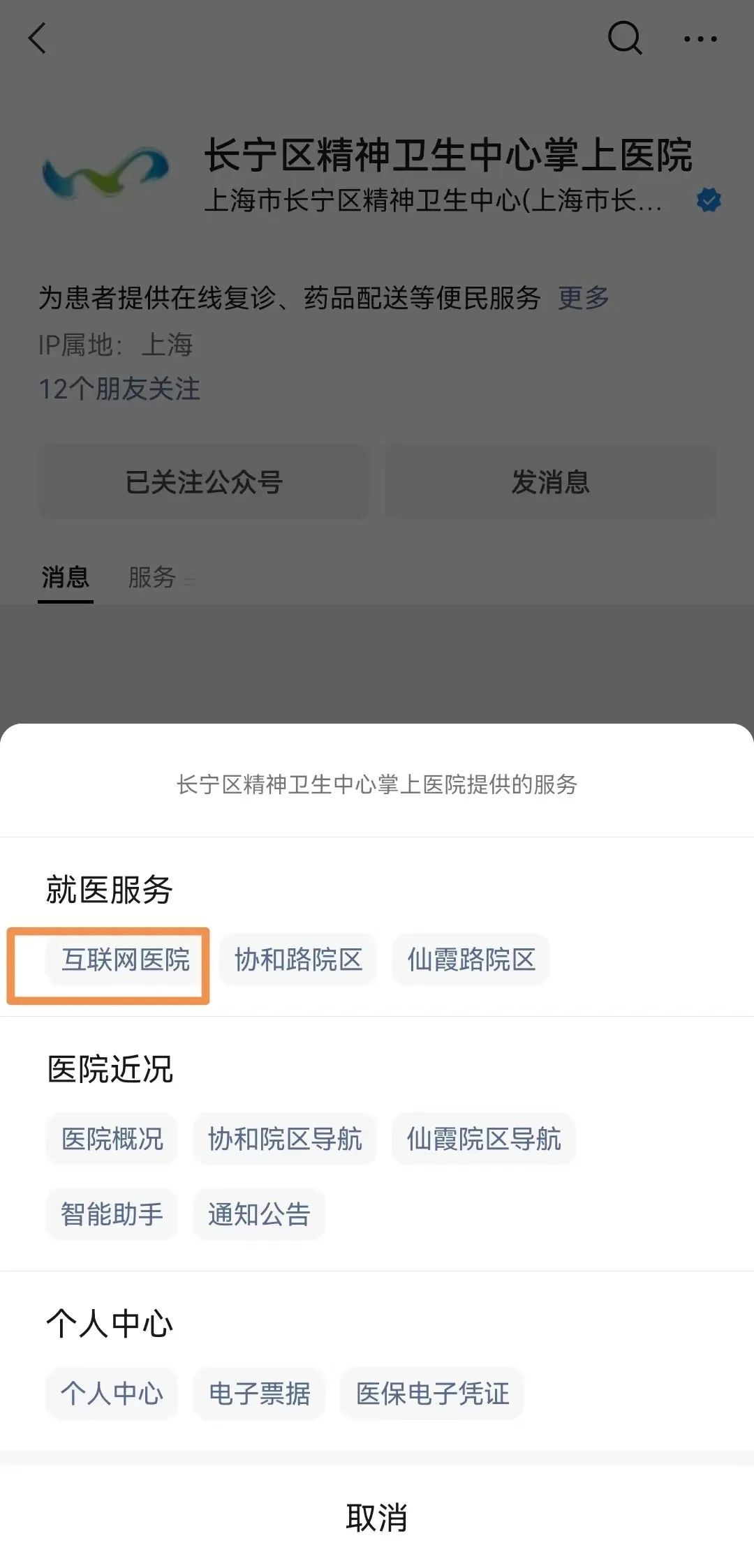 2、点击“服务”——“互联网医院”后,根据需求选择相应服务。