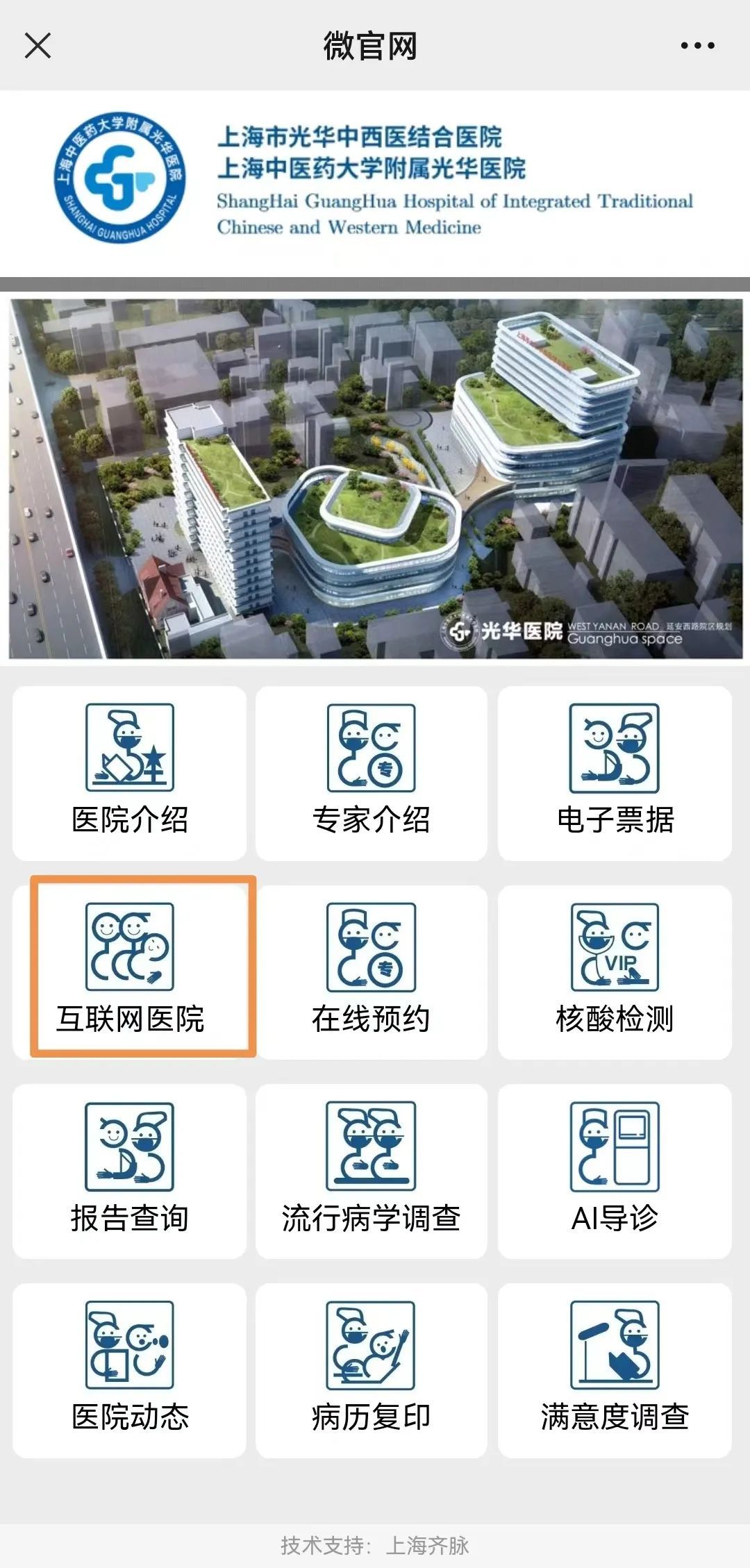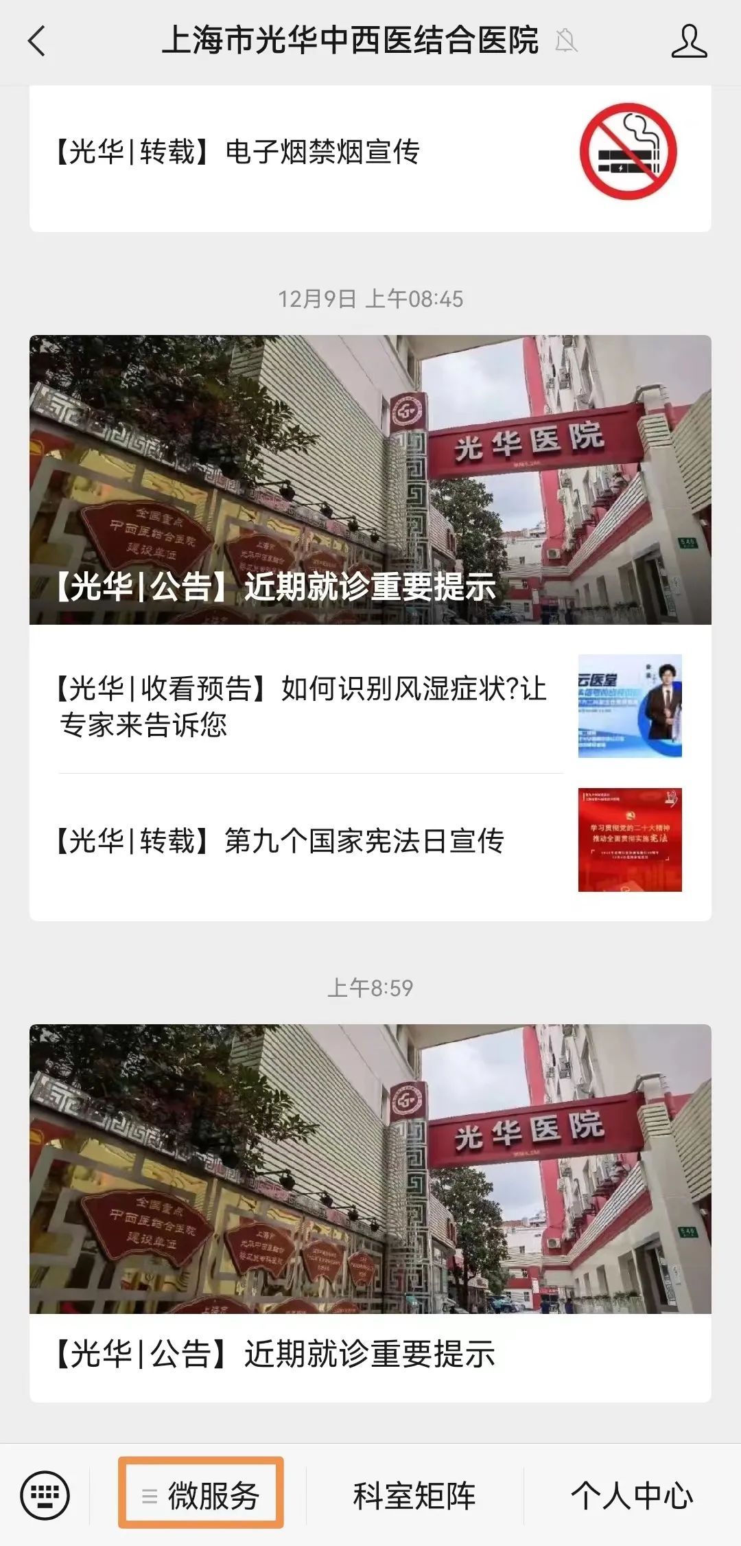 1、扫描下方二维码,关注“上海市光华中西医结合医院”微信号。