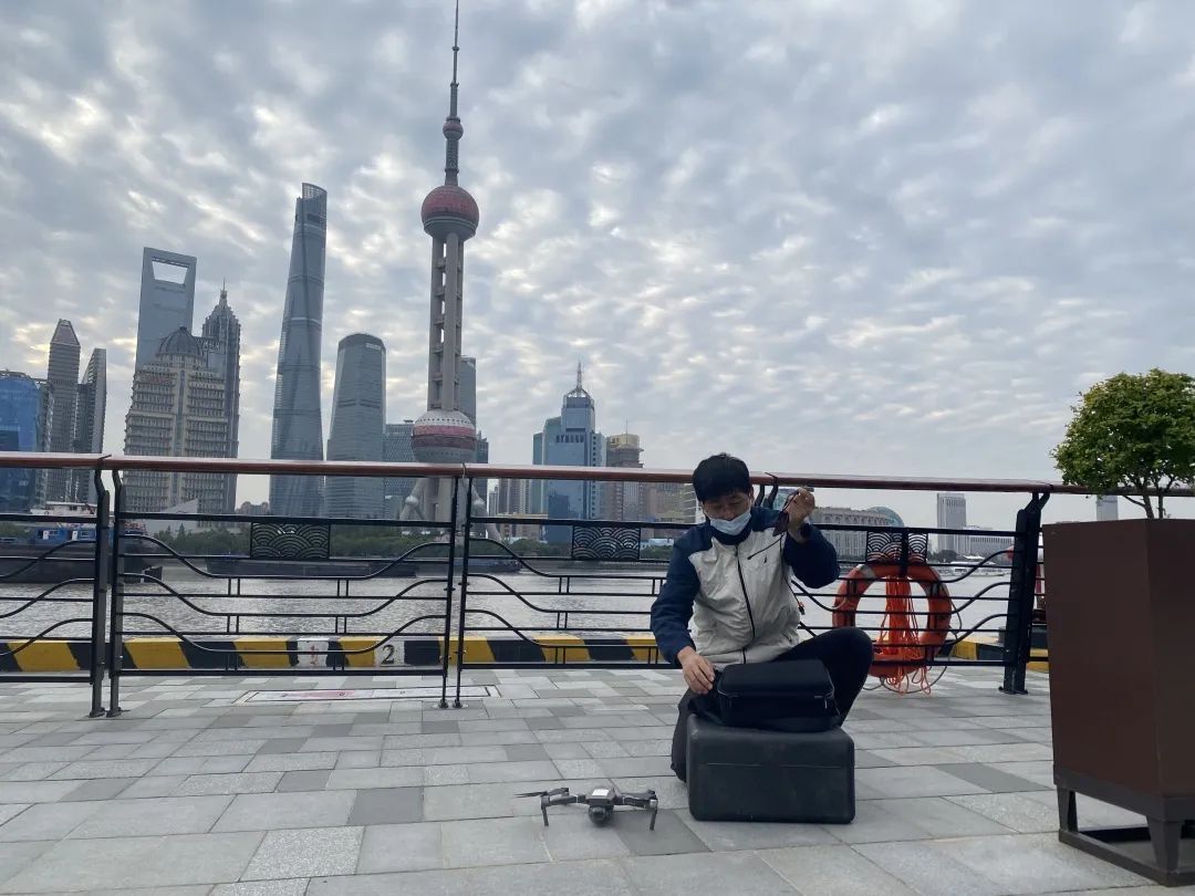 近日,在虹口区北外滩国客中心滨江岸线附近的河道上空,一架无人机正在进行排污口排查工作,工作人员可直接通过显示屏看到无人机传回的实时画面。