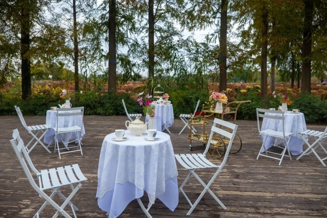 花海由19个花瓣状小岛组成,空中俯瞰,犹如一朵盛开的白玉兰,春秋两季花开满园,经过多年的打造,已经成为花开海上最具标识性的游览观赏区域;