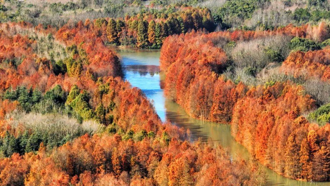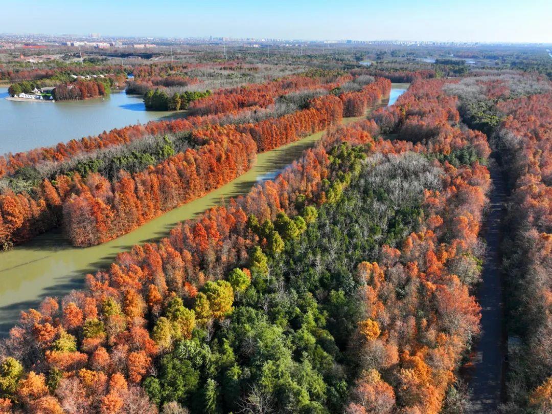 染尽霜华的烂漫红叶,是秋冬季节最美的童话。如今,在海湾国家森林公园,580亩红叶林沿湖观赏带也随着季节的更替,演绎着今年最后的绚烂。