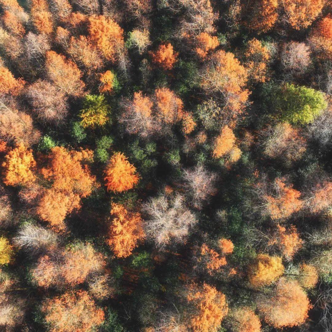 清晨的海湾国家森林公园,空气清新自然,薄薄云雾里,园内的580亩红叶林沿湖观赏带,也唱响了年末的华丽篇章。因为红叶受寒不均,浅黄、金黄、橘黄、橙红、深红等多种颜色共存在一棵树上。像是不小心打翻了的颜料盒,有的灿如晚霞,有的烈如火焰,黄的似金灿灿的太阳,橙的似蜜糖般的柑橘。天然的着色晕染,独特又美丽。