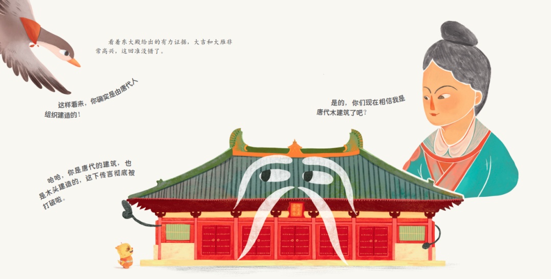 下面,就请《有故事的中国古建筑系列图画书》中的主角——森林古建筑研究所特邀研究员大吉,还有它的动物小伙伴们,带我们去看最具代表的中国古代木构建筑,探索古建筑中包含的中国美学与工匠智慧!