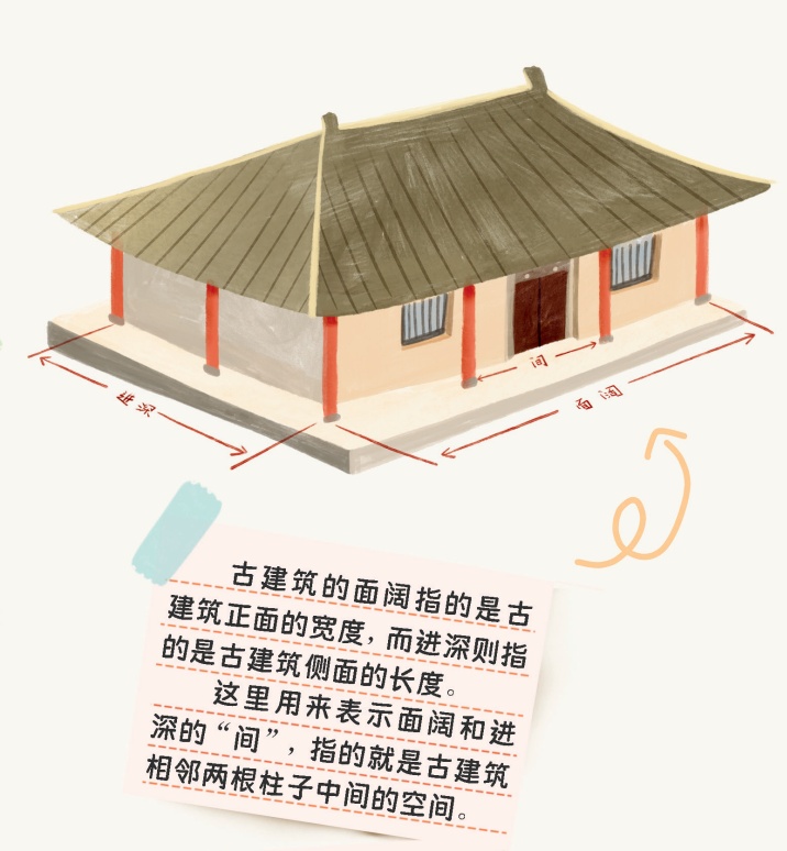 在观看中国古建筑的时候你一定要明白一个空间概念——“间”,柱子与柱子间形成的空间叫“间”。