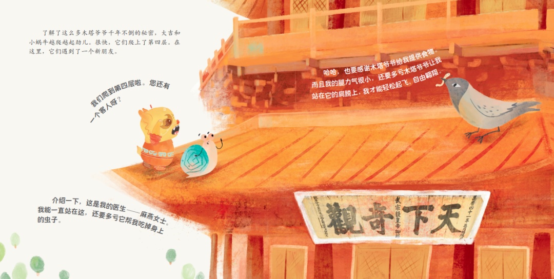 建筑文化是中华优秀传统文化的精神标识之一。《有故事的中国古建筑系列图画书》创作团队经过两年实地走访和调研,精选五处具有代表性的中国古代木结构建筑,用可爱的主角、有趣的故事、细腻的画面,为小读者展现中国古建筑中蕴藏的匠心与智慧。在古建故事之外,还增加了“经典说古建”和“图说古建”的阅读版块,选取历代文学中讲述该建筑的经典诗词,结合实地取景拍摄的高清照片,再次带小读者赏古建之妙、古建之美。
