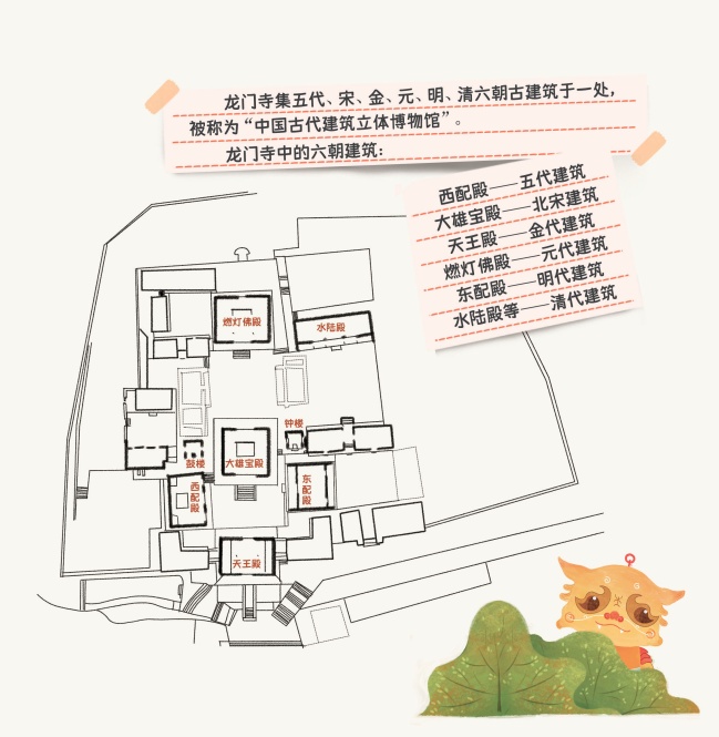 龙门寺里各朝各代的建筑有着不同的特点,特别是“帽子”(屋顶)的特点——挡雨的悬山顶、防火的硬山顶、气派的歇山顶、优雅的卷棚顶……不同的屋顶有着不同的特点和作用。