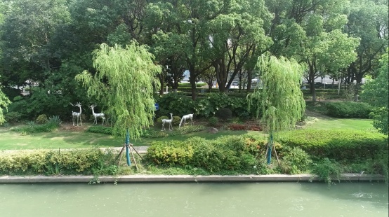 张家浜绿化提升2121平方米,柳树更换436棵,翻建护栏330米;