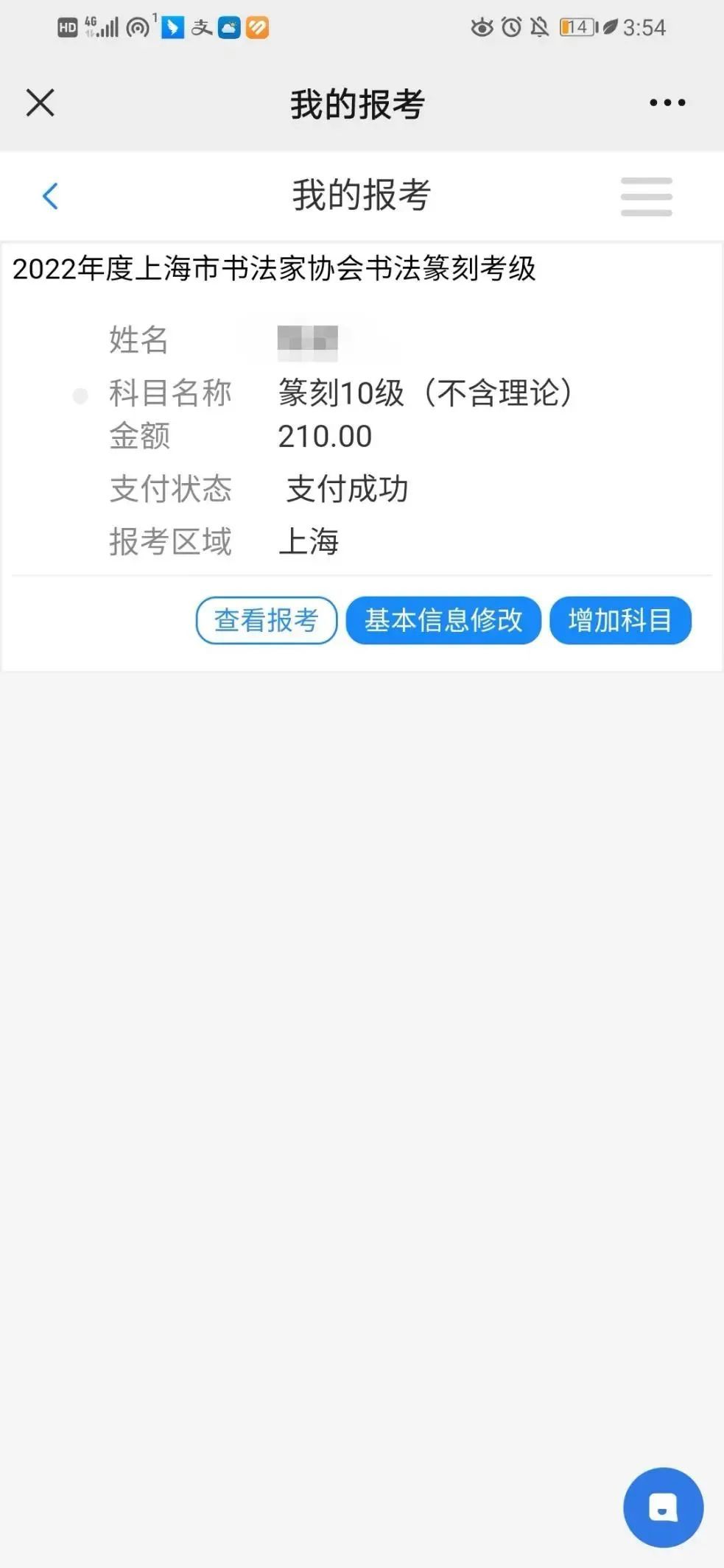 报考选择或缴费结束后,若需要再增加科目,可通过“我的报考”进行新增