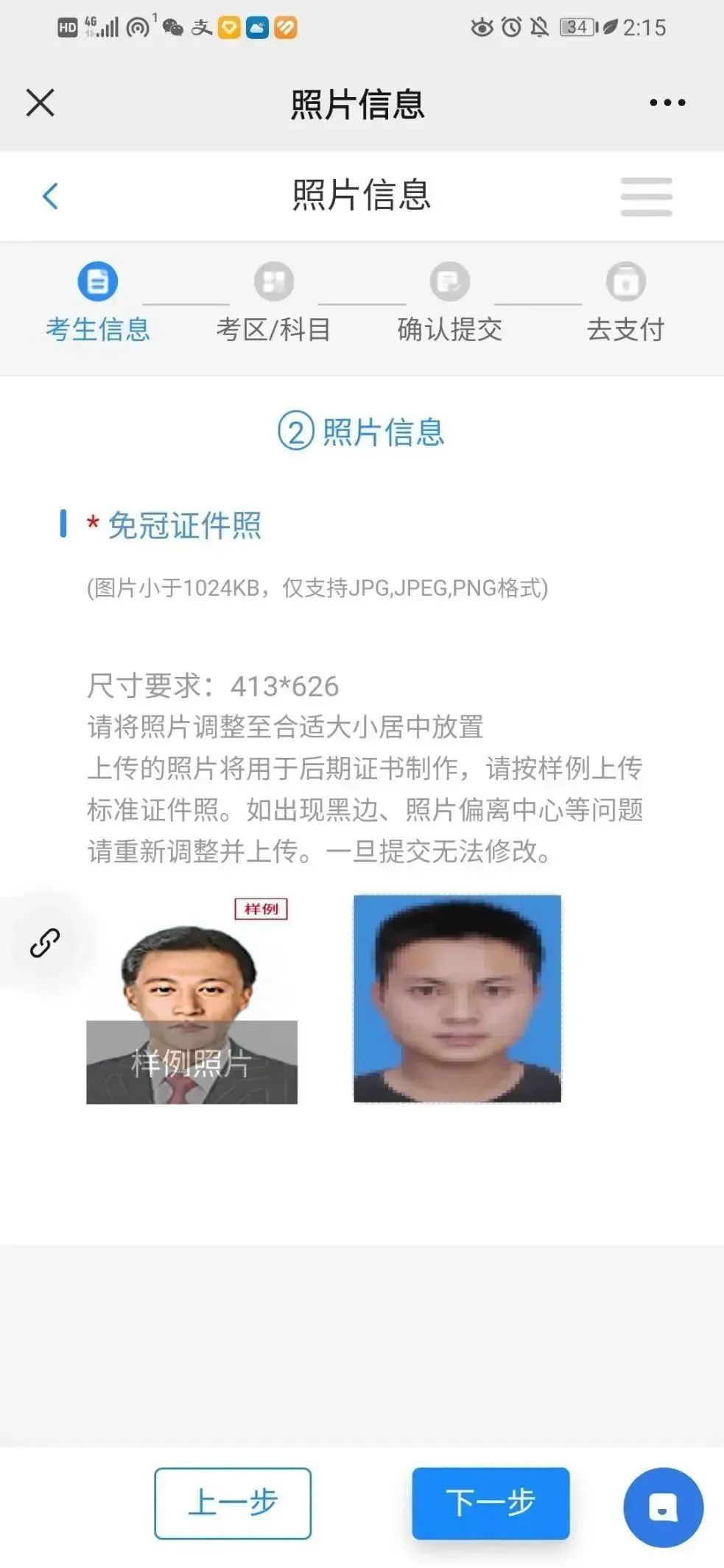 2、此照片将用于后期的准考证和证书制作,请务必按要求上传,居中放置。不可使用生活照、旅游照、风景照、翻拍照、截图等。