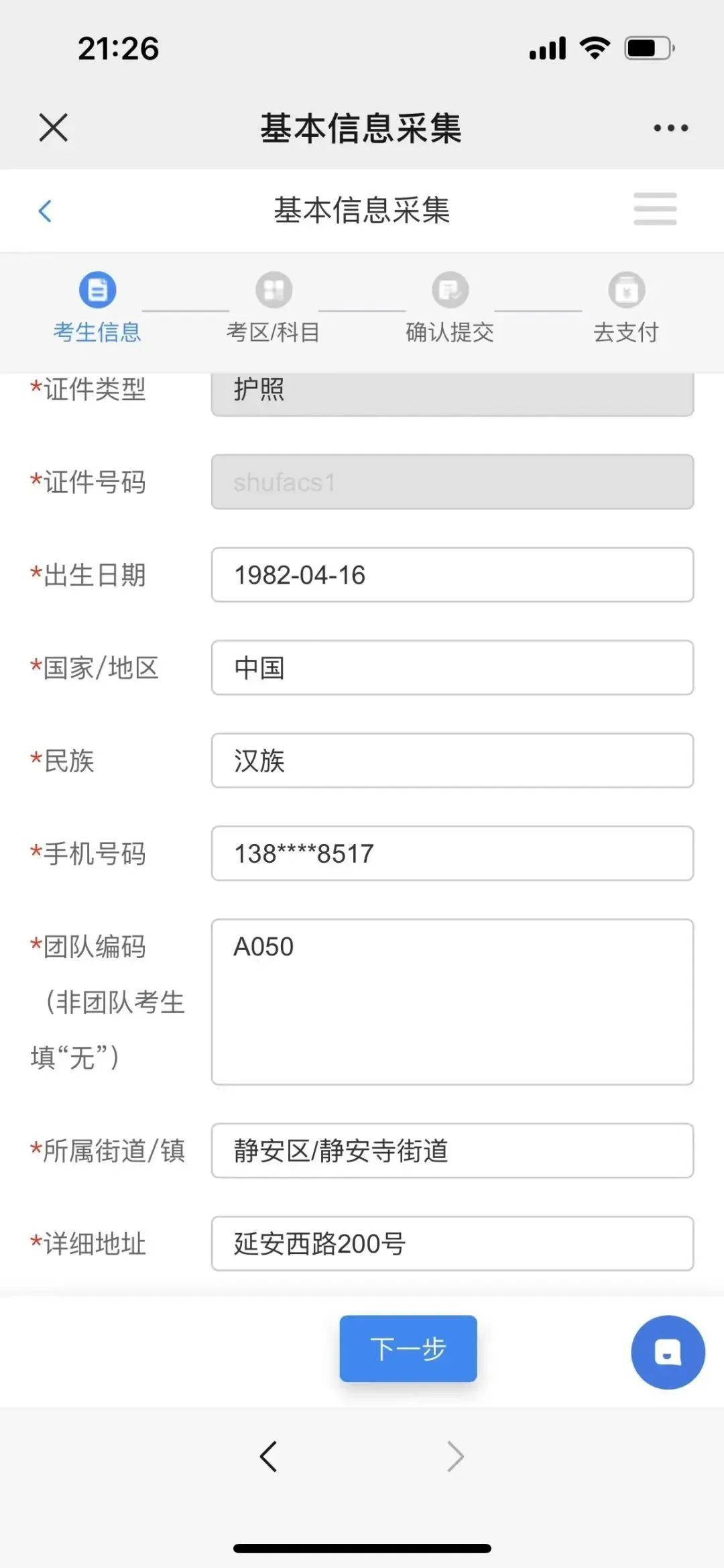 填写本次报考人员的基本信息