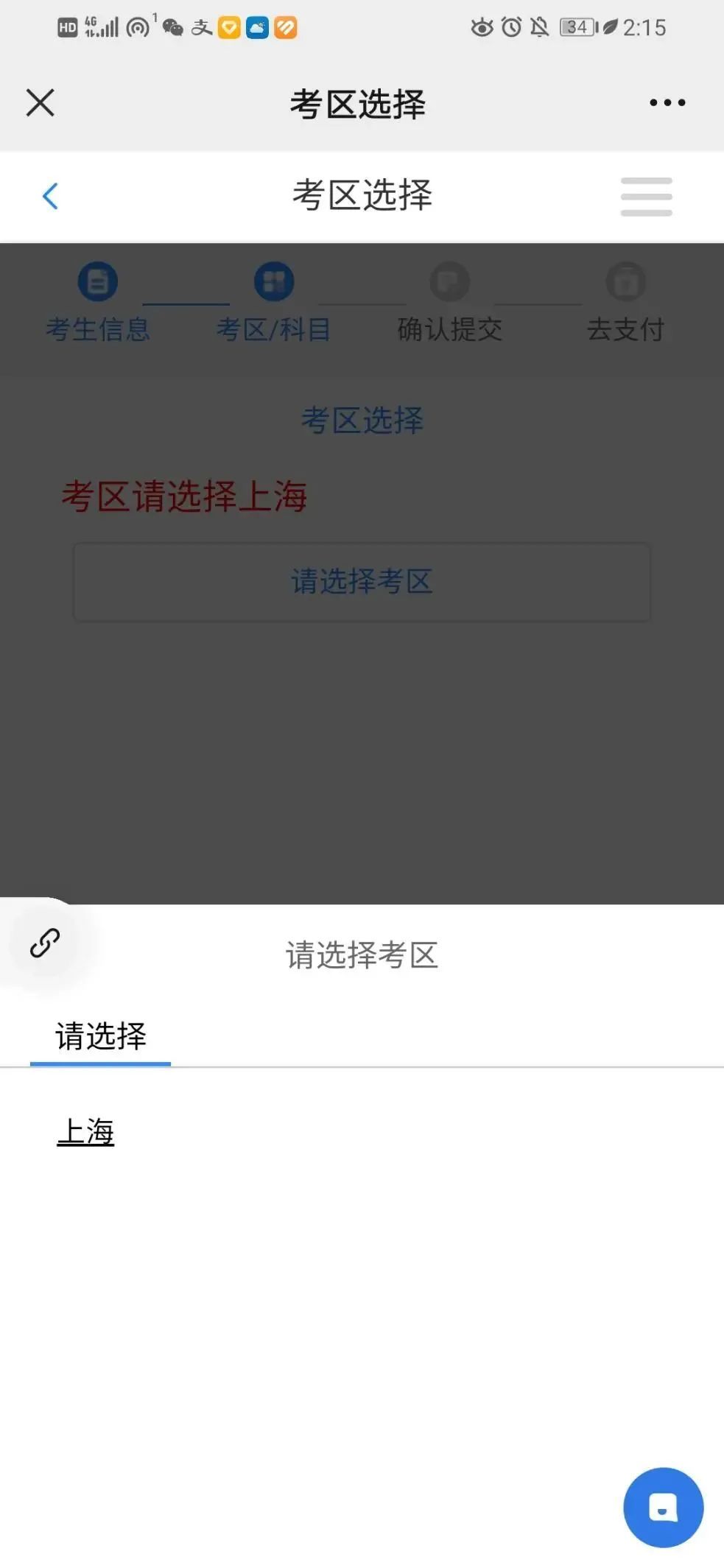 本次考核仅在上海设立考区,请统一选择“上海”