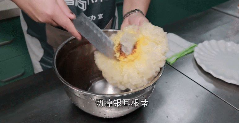 1.清水里加一汤匙面粉,少许食盐,浸泡银耳1-2分钟后用清水洗净。